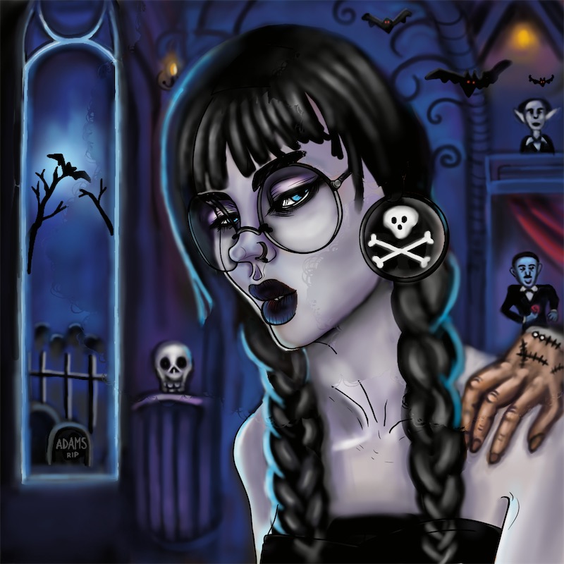 I love this Wednesday Adams creation! I see many edits in the background. Like the doorway, the mantel holding a skull, and red curtain is more defined. The bats red eyes and the tombstone with Adams engraved are great details. It's gorgeous!๐๐๐ฆ๐๐ง๐ปโโ๏ธ๐๐๐โ ๐โฐ