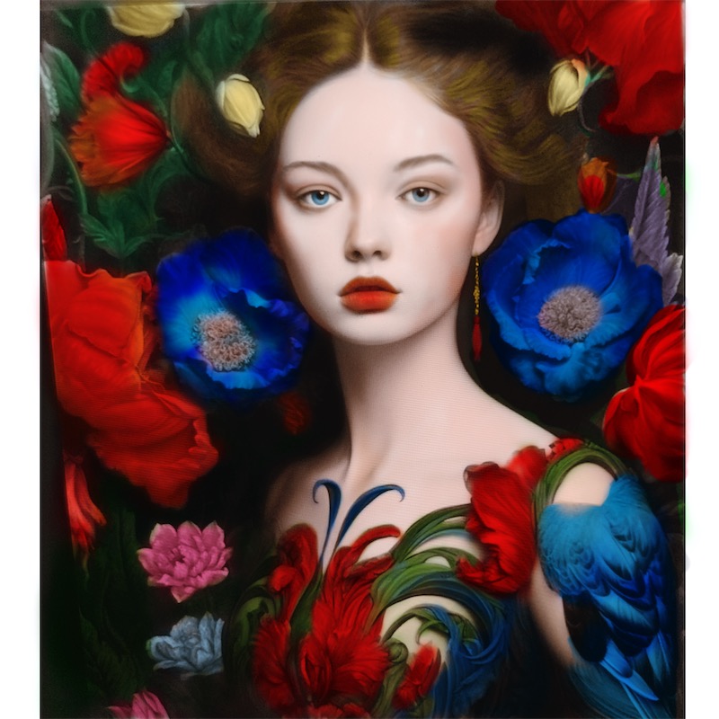 Mia cara mica @@ Gabriella 🇮🇹❤️🇻🇪❤️🇺🇸❤️ You spoiled me again with this beautiful work of art! She and her beautifully colored flowers are absolutely breathtaking. Grazie mille tesoro, ti voglio bene 🥰🫶🏼♥️